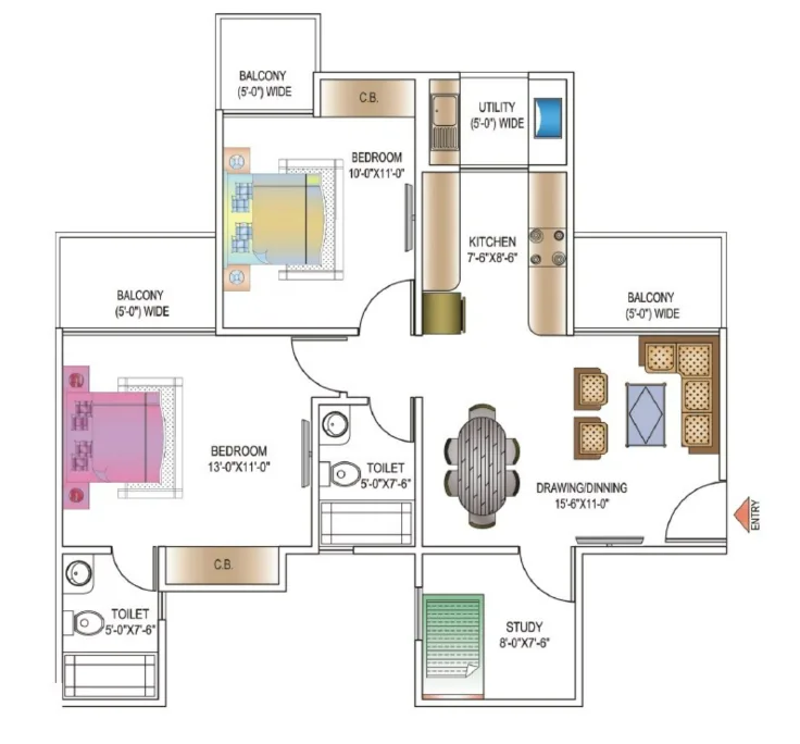 The project offers 973 sqft. to 2095 sq. ft. configurations. For more details, you can visit our “Floor Plans & Pricing” section.