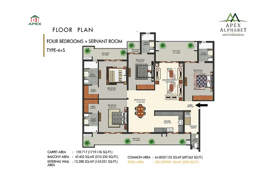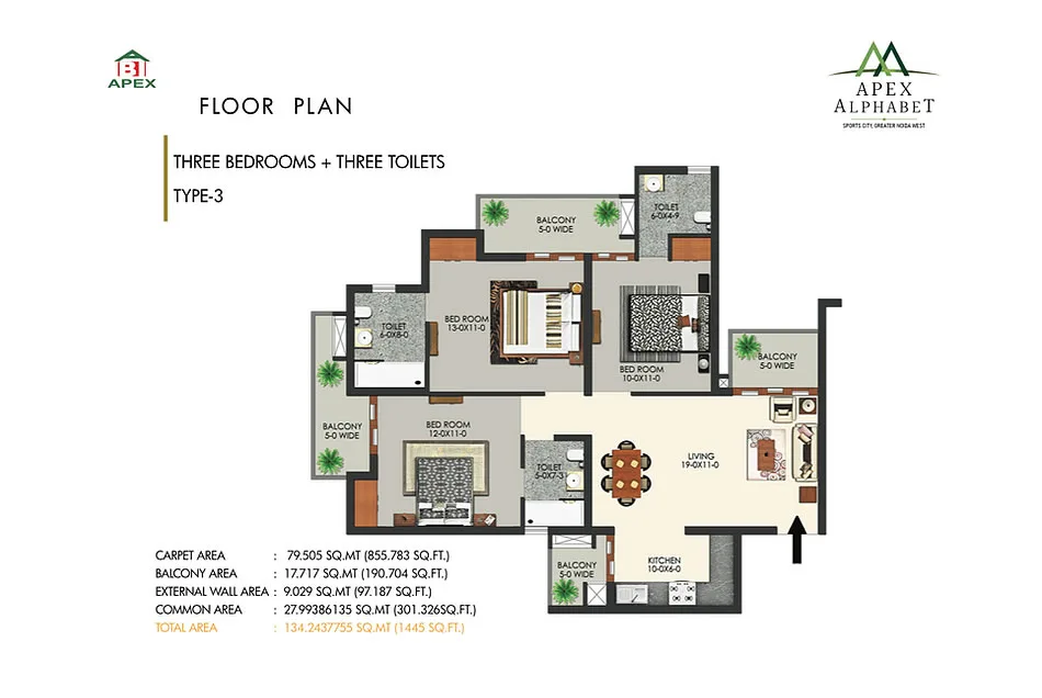 Apex Alphabet is a registered residential project under RERA with the number UPRERAPRJ7818, situated in Sector 1, Greater Noida West. Spanning a total land area of 3.70 acres, this development features five towers, each comprising 26 floors, offering a range of luxurious 2, 3, and 4 BHK apartments. The project is part of a larger 130-acre Sports City, recognized for its low-density environment, ensuring robust infrastructure for future generations. Residents will benefit from extensive amenities including lush green spaces, multi-purpose playfields, an indoor sports hall, a cricket academy, a swimming center, and a hospital. The location boasts seamless connectivity to key areas in and around the National Capital Region (NCR) and is designed as a corner project with three open sides. Notable features include a temperature-controlled indoor pool and modern recreational facilities, making it an attractive option for families seeking a blend of luxury and comfort in their living environment.