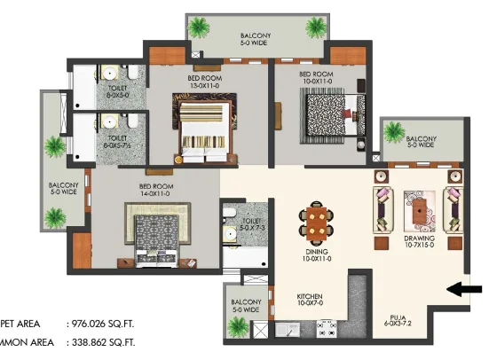 The project offers 1237 sq. ft. to 3070 sq. ft. configurations. For more details, you can visit our “Floor Plans & Pricing” section.