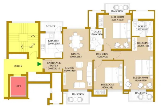 Living | Dining 3 Bedrooms | 3 Toilets | Balconies | Kitchen | Foyer