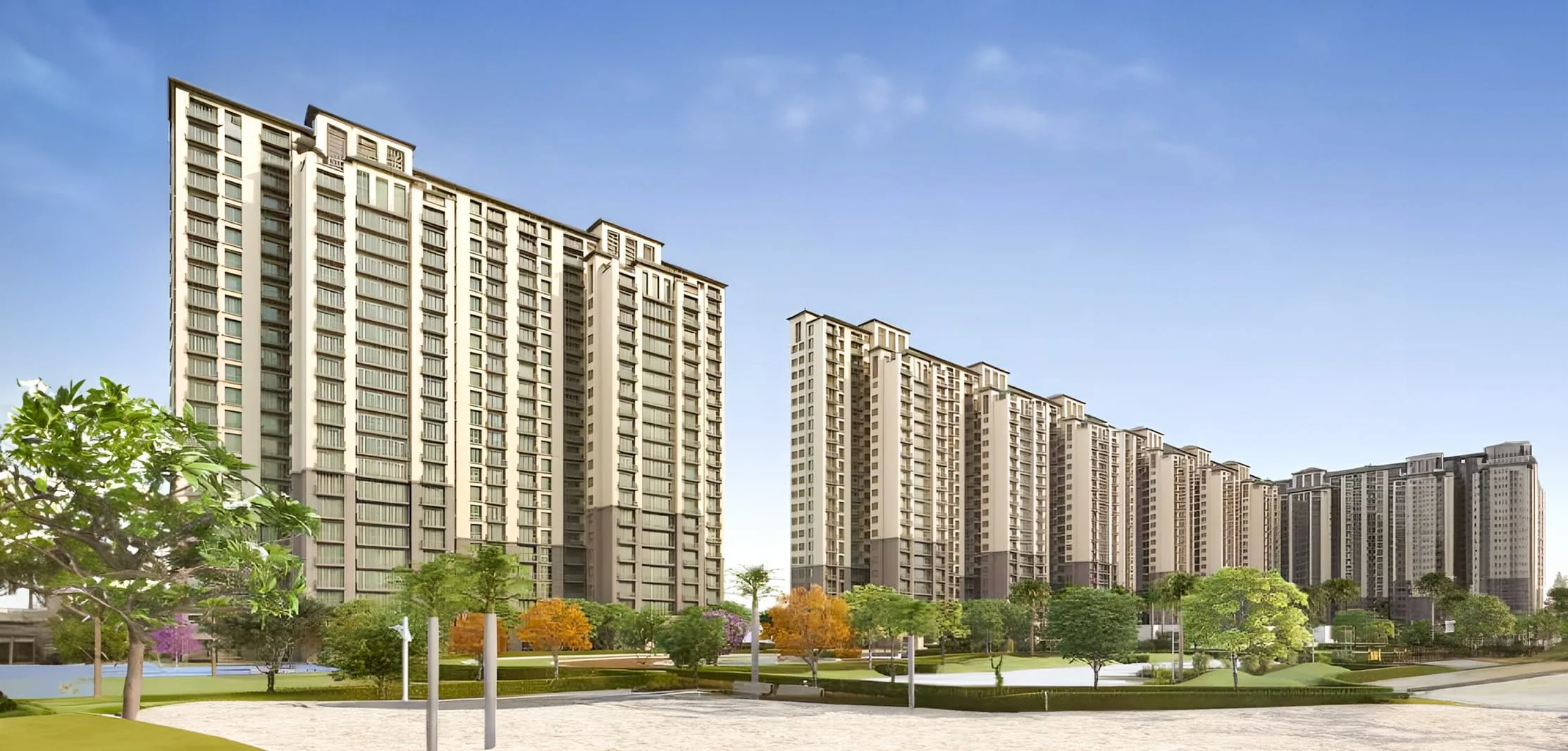 The total land size is 38.02 acres with 20 towers and G+25 floors.