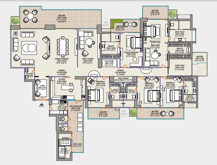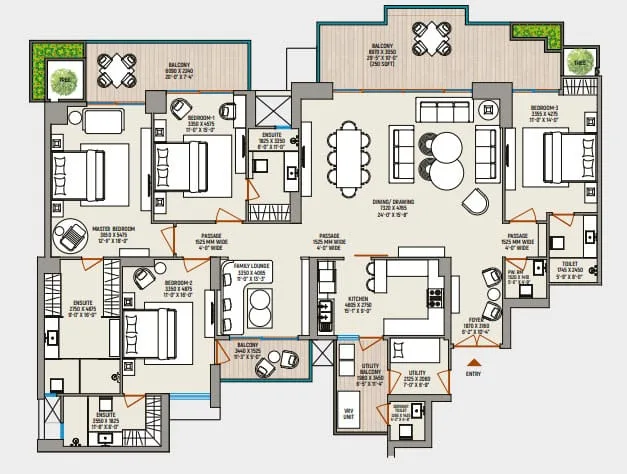 The township has 4 towers, 31 floors, 224 apartments, 3 and 4 BHK, plus 6 duplexes, giving you ample options to choose from. Sector 107 is at a very strategic location that offers excellent connectivity to major areas in the city. Major roadways in proximity are Noida expressway being 13 minutes away, DND (Delhi Noida direct) flyway being 18 minutes away and sector 101 metro station being a commute of 5 minutes. The location of County 107 has easy access to nearby premium schools including Pathways School and Amity University. Good hospitals in the vicinity are Apollo Hospital, Jaypee Hospital and Fortis Hospital. For leisure purposes Mall of India, Ivy Country, Worlds of Wonder, Akshardham Temple and Golf Course are accessible.