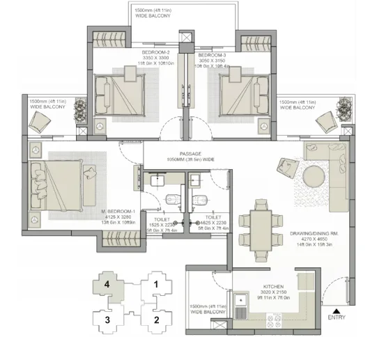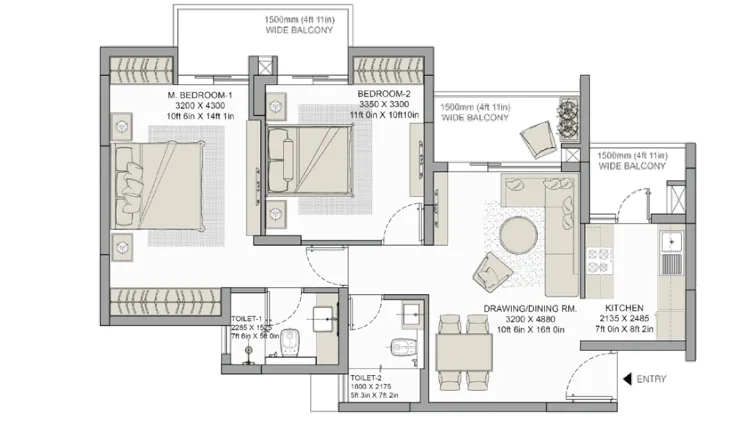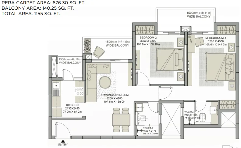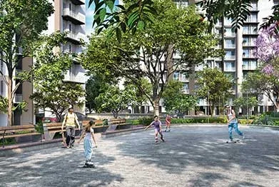 The project provides 2 BHK and 3 BHK (1137 sq. ft. to 1404 sq. ft.) apartments across 17 towers. For details, refer to our “Floor Plans & Pricing” section.