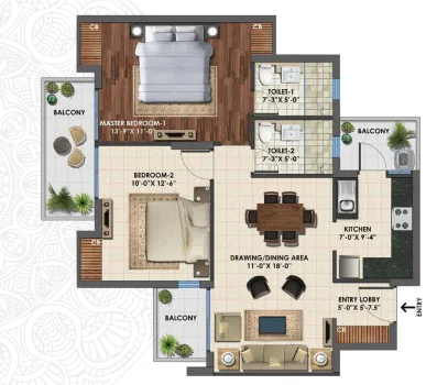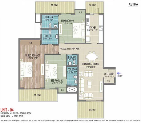 The project offers 1150 sq. ft. to 2005 sq. ft. configurations. For more details, you can visit our “Floor Plans & Pricing” section.