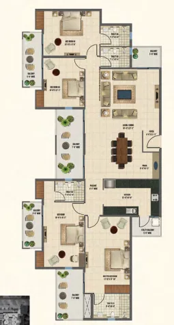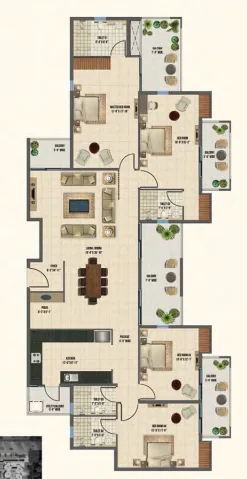 The design of Express Astra features a corner plot layout with only four flats per floor, ensuring enhanced privacy for residents. Notably, there is an exclusive tower dedicated to 3BHK apartments, which houses just two units per floor. The project incorporates 75% open space with a podium concept that creates a vehicle-free zone, promoting safer and more tranquil living conditions.Residents will have access to the exclusive Club Kosha, which spans over 40,000 sq. ft. and offers a range of premium recreational amenities. Strategically positioned along a 150-meter-wide road, Express Astra connects the Delhi-Meerut Expressway to Greater Noida, enhancing accessibility.