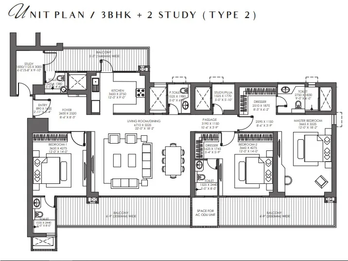 • Spacious and Luxurious Residences: Experience spacious 3 and 4 BHK apartments with premium finishes and modern fittings.