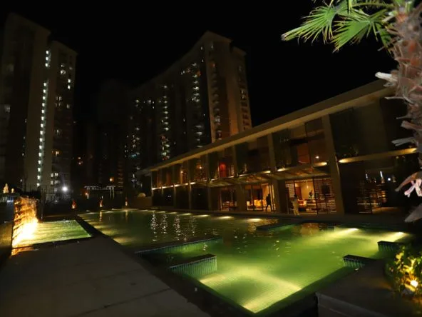 This RERA-certified project (UPRERAPRJ9966) spans 17 acres and features 17 towers offering 1, 2, 3, and 4 BHK configurations. Situated on a 3-sided open corner plot, it boasts RFID security for vehicle entry, golf cart transportation, and all green-facing apartments. Residents can enjoy a 7-acre central park, an exclusive musical fountain, and a pool club complete with a lazy pool and sun deck garden.