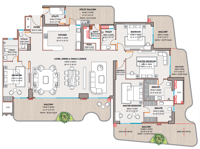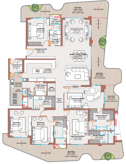 4BHK + 5 TOILET + 3 BALCONY+ UTILITY ROOM WITH TOILET
