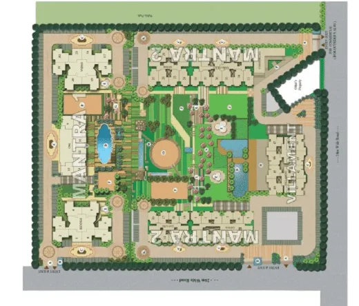 Mahagun Mantraa II is a RERA-certified residential project located in Noida Extension, with the registration number UPRERAPRJ1870. Spanning across 3.02 acres, the development consists of three towers and offers a range of configurations, including 2 BHK and 3 BHK apartments. The project features beautifully crafted Neoclassical architecture designed by the world-renowned architect Hafeez Contractor, complemented by lush landscaping created by Sanju Bose. This certified green building adheres to the ‘GOLD’ standard, ensuring sustainable practices throughout its design. It includes separate drop-off areas to minimize vehicular movement and skillfully designed landscaped spaces featuring water features, sculptures, and multi-purpose lawns. Residents can enjoy a grand entrance lobby equipped with high-speed elevators, while the extrovert planning maximizes space efficiency.The project incorporates modern technology, such as a single optical fiber for integrated TV, telecom, and networking services, along with high-performance building materials that enhance energy efficiency. The gated community is secured with CCTV surveillance at entrance lobbies, providing peace of mind for residents.