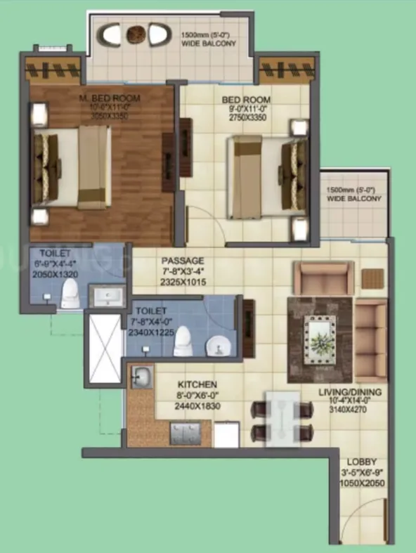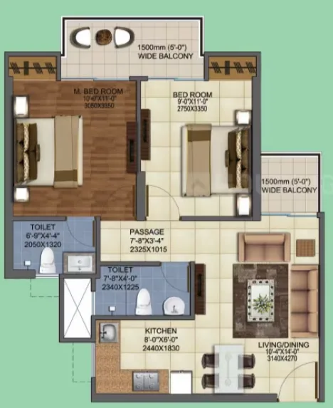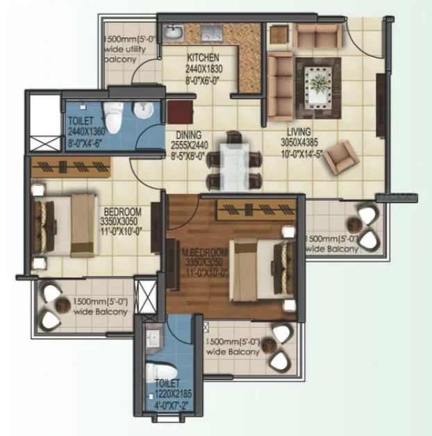 The project offers 850 sq. ft. to 2190 sq. ft. configurations. For more details, you can visit our “Floor Plans & Pricing” section.