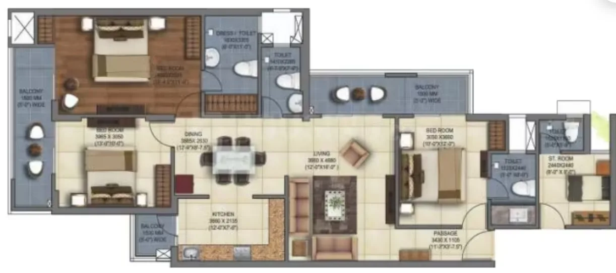 Mahagun Mywoods is a luxurious residential development that is RERA-certified (RERA No.: UPRERAPRJ3330). A perfect fusion of green spaces and high-end conveniences defines Mahagun Mywoods, creating a desirable residential experience within a gated community. This development embodies the concept of “a home in the woods, yet within the city.” Spanning 35 acres and designed by the Padma Bhushan awardee Hafeez Contractor, Mahagun Mywoods is built to pre-certified IGBC GOLD standards and is divided into three phases. Each phase is designed to be self-contained, offering a range of amenities including retail spaces, a school, medical facilities, and individual clubhouses. Each clubhouse features swimming pools for adults and children, modern fitness studios, spa services, and multifunctional halls. Residents can also enjoy a range of outdoor activities, with features such as themed woodland plantations, adventure parks, fruit orchards, and nature tracks for walking and meditation. Special features like reflexology trails and seating areas for senior residents enhance wellbeing. A variety of sporting amenities like courts for tennis and basketball, a skating rink, and cricket ensure an active lifestyle and are complemented by a jogging and cycling track, and an outdoor amphitheater.
