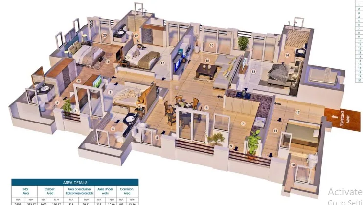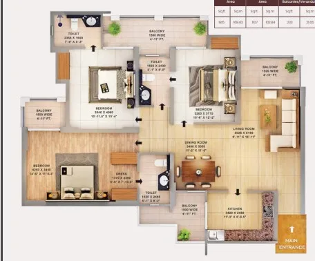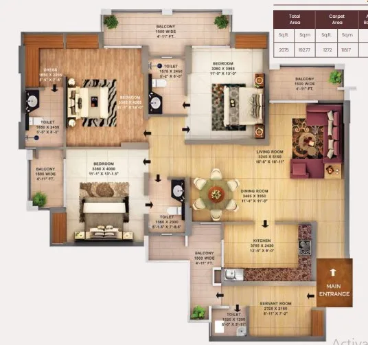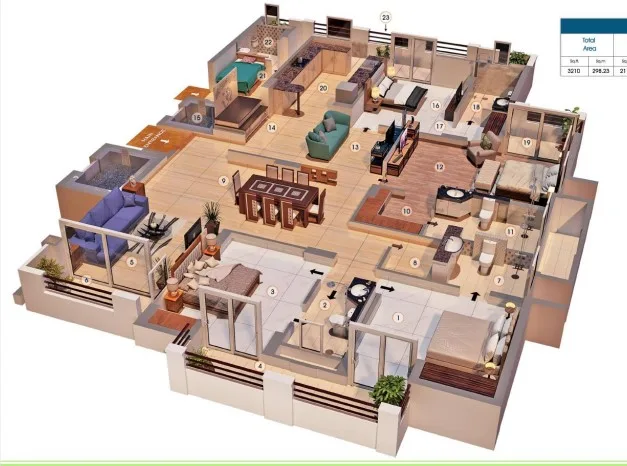 The project offers 1725 sq. ft. to 3210 sq. ft. configurations. For more details, you can visit our “Floor Plans & Pricing” section.