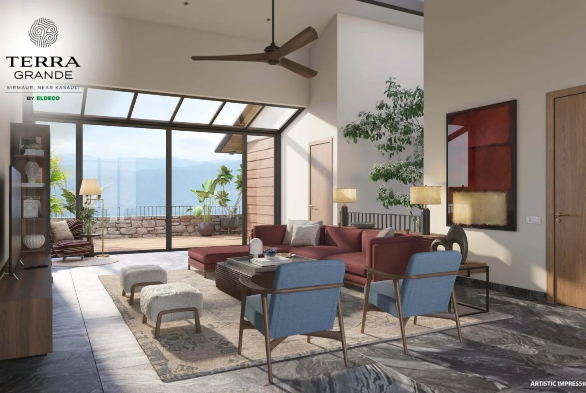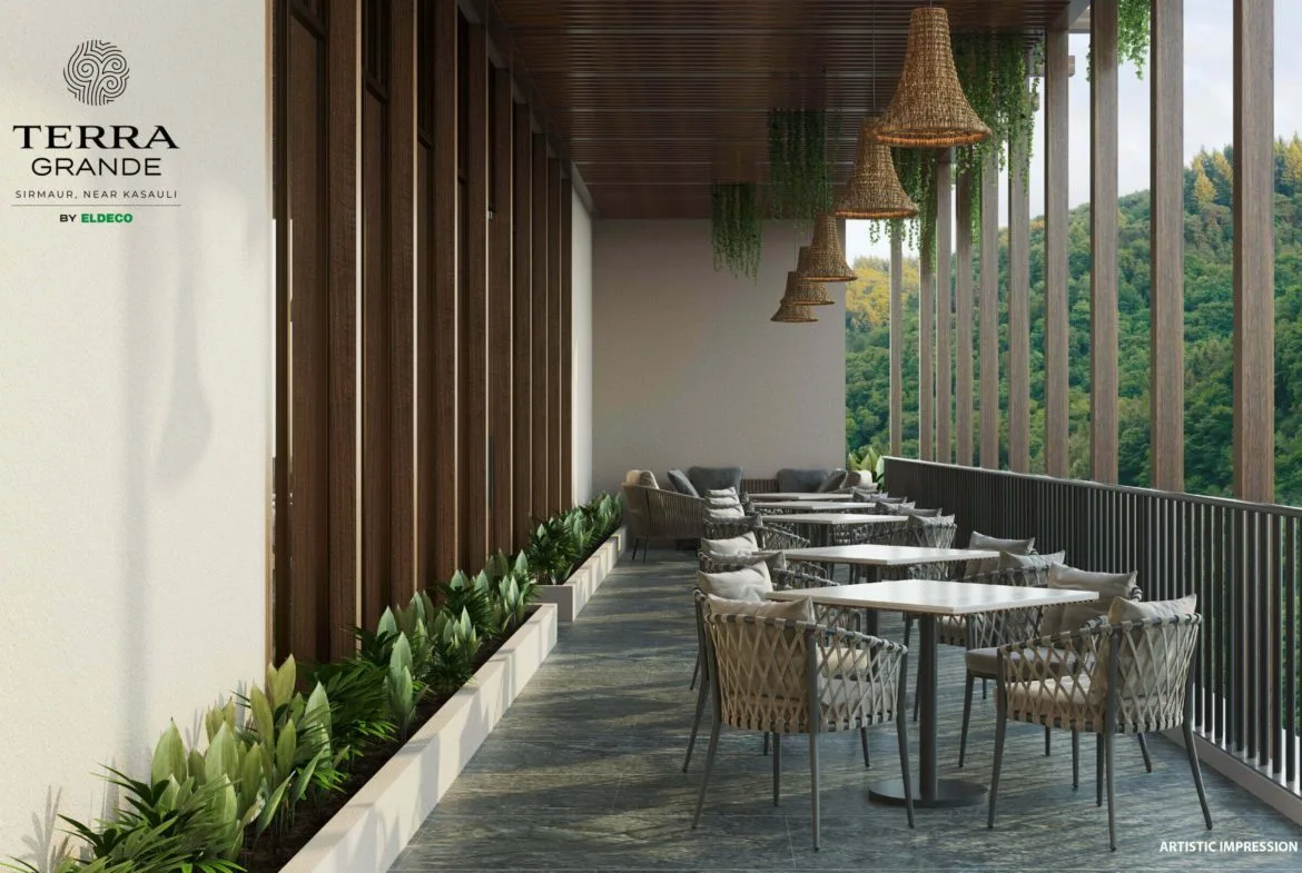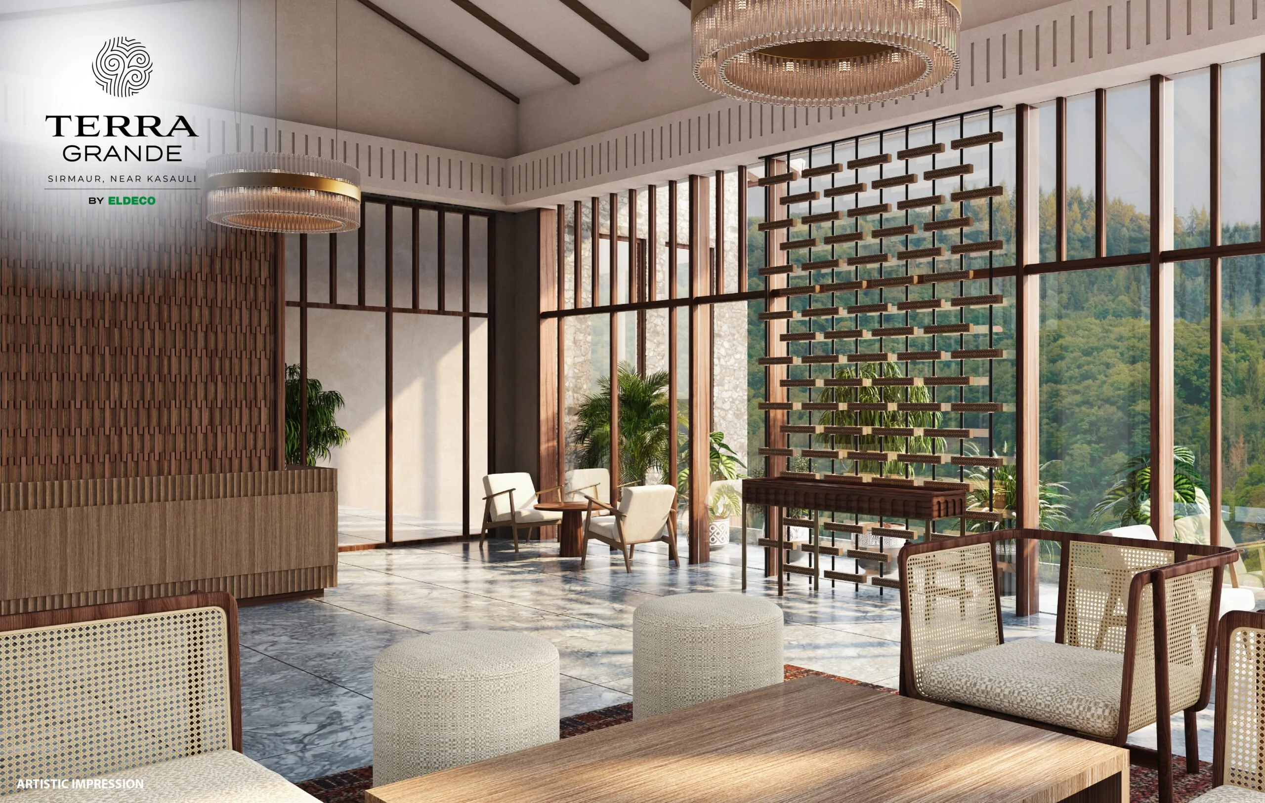 Terra Grande spans a thoughtfully planned area with only 3 villas per acre, ensuring exceptional privacy and exclusivity. Across its total land area, the project offers 80 estate villas with customizable 3, 4, and 5 BHK options, all crafted by award-winning architects. What sets Terra Grande apart are its private heated pools, lush gardens, luxurious lounges, a serene clubhouse, landscaped walking paths, and expansive sports facilities. Additionally, the location provides pollution-free air year-round and breathtaking, uninterrupted views of the valley and Himalayas, making it a truly unique and elevated living experience.